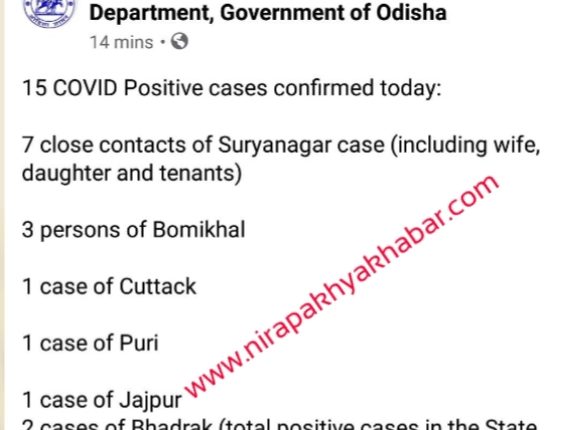 ଓଡ଼ିଶାରେ ୨୦ କରୋନା ଆକ୍ରାନ୍ତ, ଗୋଟିଏ ଦିନରେ ଆକ୍ରାନ୍ତଙ୍କ ସଂଖ୍ୟା ୧୫
