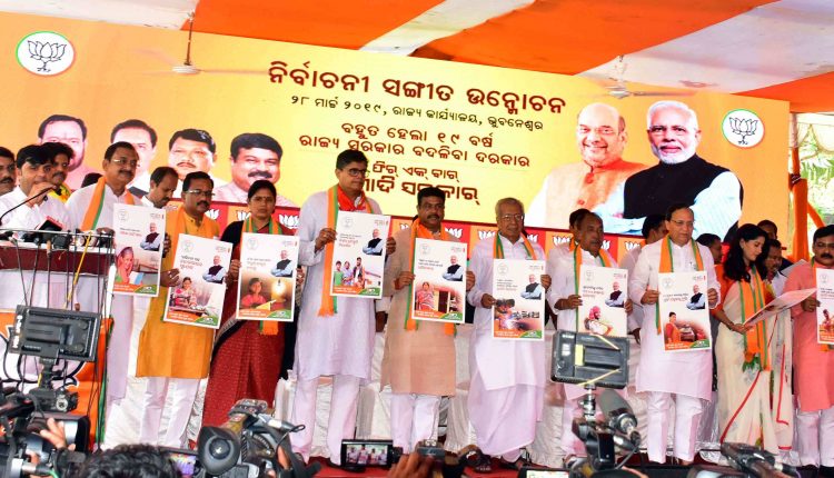ଭୁବନେଶ୍ୱର ନିରପେକ୍ଷ ଖବର, ତା.୨୮/୦୩: ୨୦୧୯ ସାଧାରଣ ନିର୍ବାଚନ ପାଇଁ ବିଜେପି ପକ୍ଷରୁ ପ୍ରଚାର ଗାଡି, ନିର୍ବାଚନୀ ପ୍ରଚାର ସଂଗୀତ ଏବଂ ନିର୍ବାଚନୀ ପୋଷ୍ଟର ଶୁଭାରମ୍ଭ ହୋଇଛି । ଆଜି ରାଜ୍ୟ କାର୍ଯ୍ୟାଳୟରେ ନିର୍ବାଚନୀ ସଂଗୀତର ଅଡିଓ ଓ ଭିଡିଓ ସିଡି, ପୋଷ୍ଟର ରିଲିଜ ସହ ପ୍ରଚାର ଗାଡିର ଶୁଭାରମ୍ଭ କରାଯାଇଛି । ଫିର ଏକ ବାର ମୋଦୀ ସରକାର ଏବଂ ରାଜ୍ୟରେ ସରକାର ବଦଳିବା ଦରକାର ନାରାରେ ମ୍ୟୁଜିକ ଭିଡିଓ ରିଲିଜ ହୋଇଛି । ‘ମୋଦି ରଙ୍ଗ ଲାଗିଲା ବିକାଶର ରଙ୍ଗ ଲାଗିଲା’, ‘ନୂଆ ଆଶା ପୂରା ଭରସା ମୋଦୀଙ୍କ ସାଥେ ନୂଆ ଓଡିଶା’, ‘ଭୋଟ ଦେମା ଆମେ ପଦମ ଫୁଲେ’, ଆଦି ଅନେକ ନିର୍ବାଚନ ସଂଗୀତର ଭିଡିଓକୁ