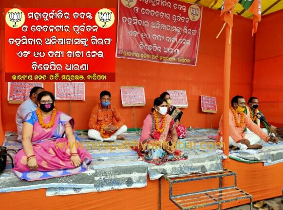 ବିଜେପି ପକ୍ଷରୁ ଜିଲ୍ଲାପାଳଙ୍କ କାର୍ଯ୍ୟାଳୟ ସମ୍ମୁଖରେ ଧାରଣା