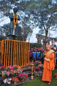 ସ୍ୱାମୀ ବିବେକାନନ୍ଦଙ୍କ ପ୍ରତିମୂର୍ତ୍ତିରେ ଭୁବନେଶ୍ୱର ରାମକୃଷ୍ଣ ମିଶନ୍ର ସଂପାଦକ ସ୍ୱାମୀ ଆତ୍ମାପ୍ରଭାନନ୍ଦଜୀ ମାଲ୍ୟାର୍ପଣ କରି ବିବେକାନନ୍ଦଙ୍କୁ ଭାରତୀୟ ଦର୍ଶନ ଓ ଚିନ୍ତନର ଆତ୍ମା ଭାବରେ